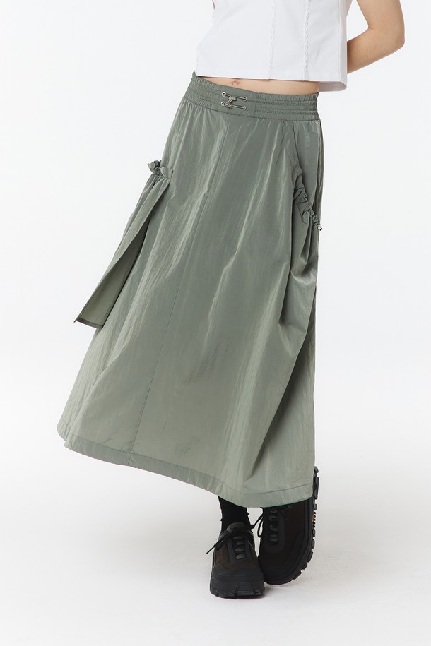 여성 언발란스 아웃포켓 스커트 (애쉬 올리브)_5L41811