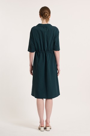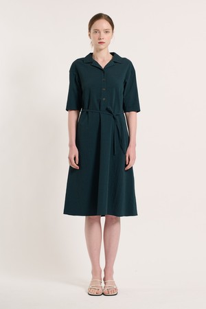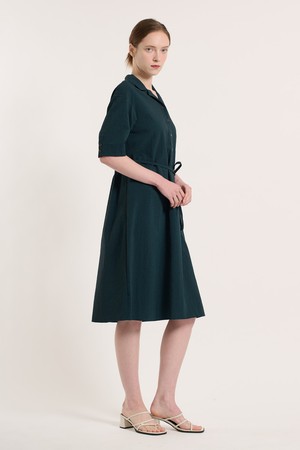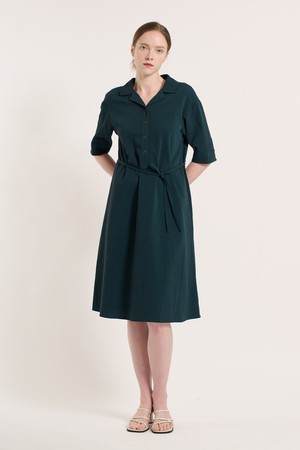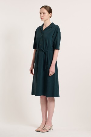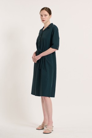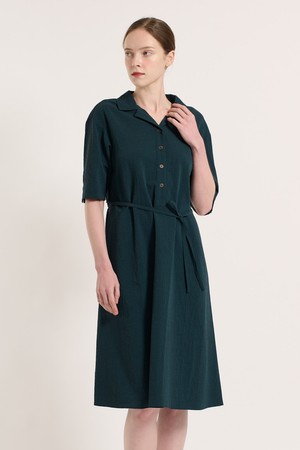 [25SU] 체크 패턴 벨티드 반소매 원피스 - DARK GREEN B5M3O67043