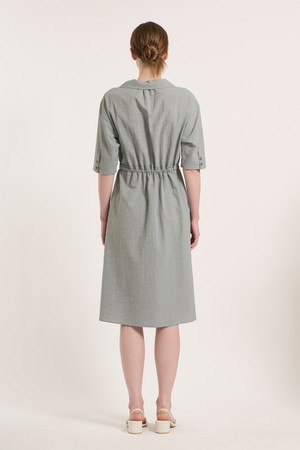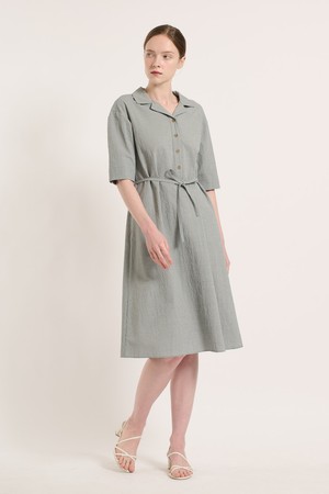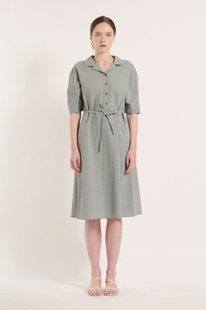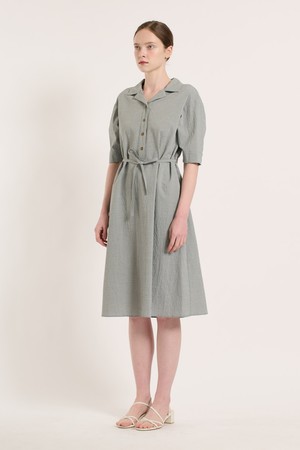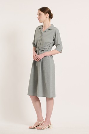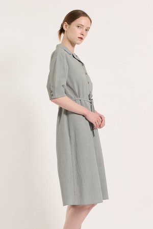 [25SU] 체크 패턴 벨티드 반소매 원피스 - LIGHT GRAY B5M3O67015