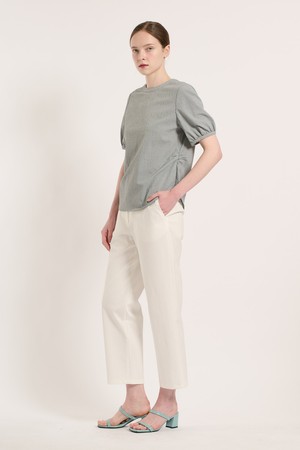 [25SU] 체크 패턴 라운드넥 반소매 블라우스 - LIGHT GRAY B5M3B47215