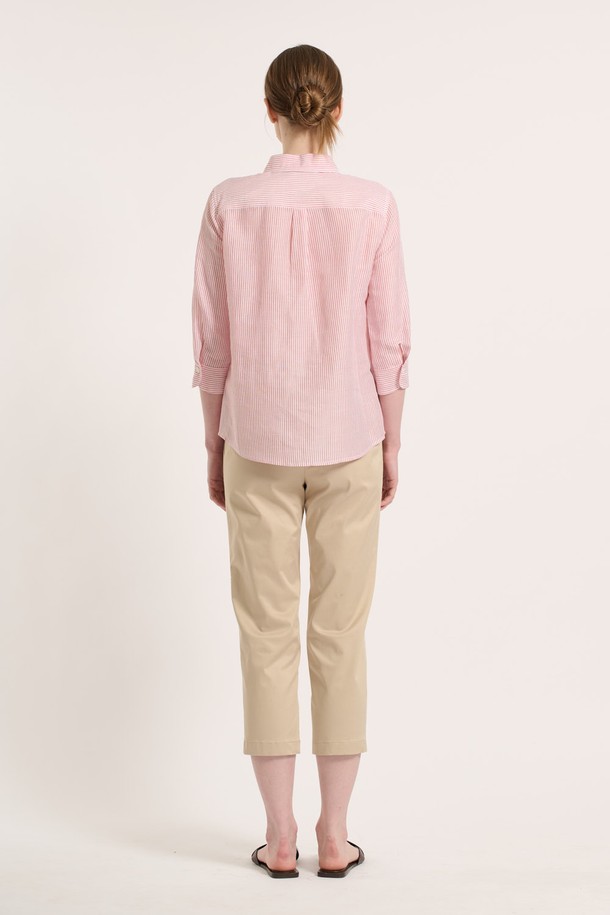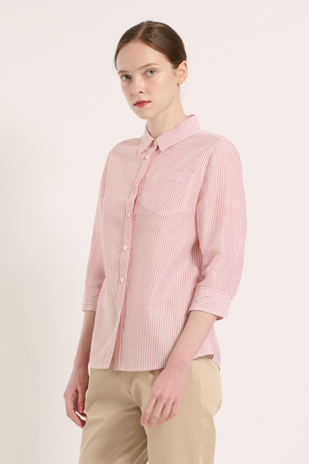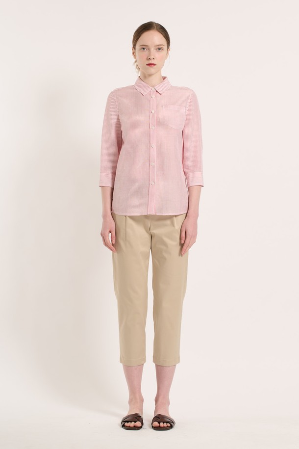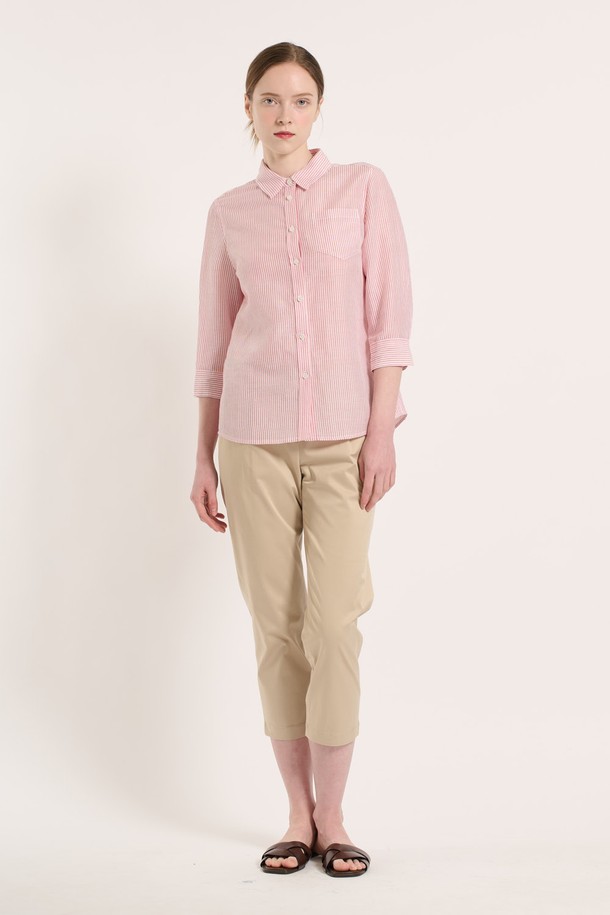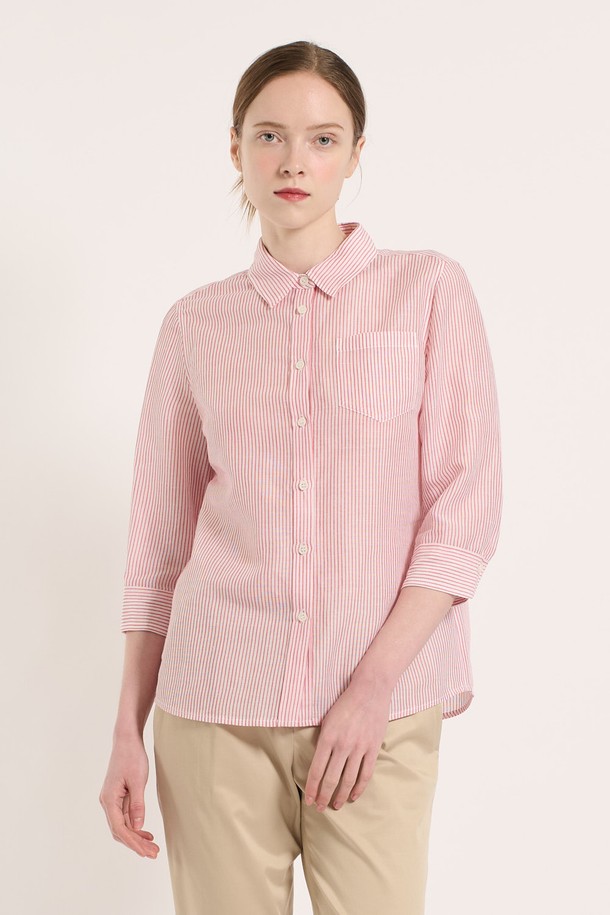 [25SU] 포켓 패치 스트라이프 셔츠 - RED B5M3B47124