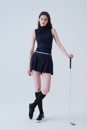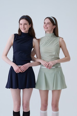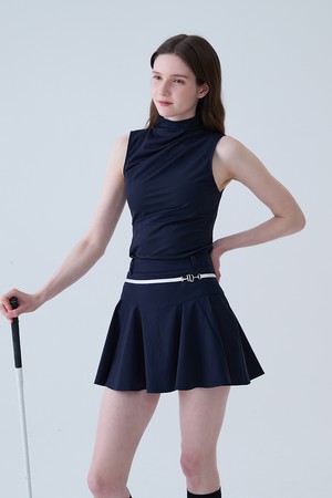 쿨 슬림 셔링 모크넥 나시 티셔츠 NAVY
