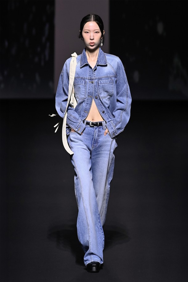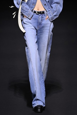 ASYMMETRIC SEAM WASHED DENIM JEAN