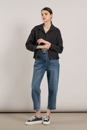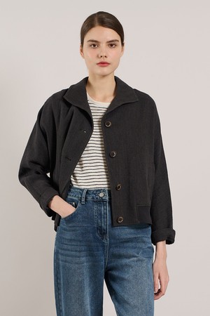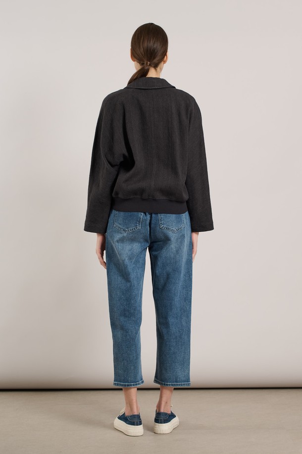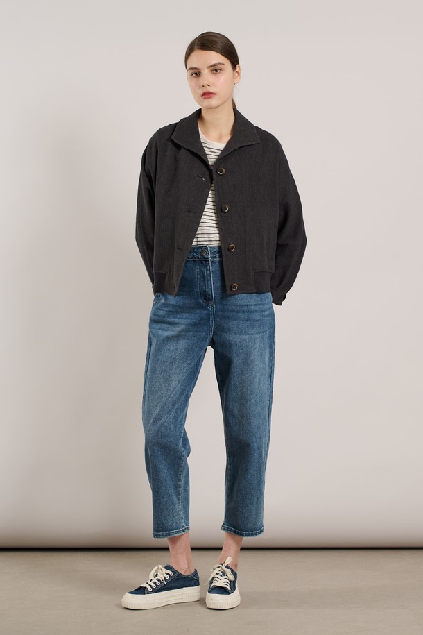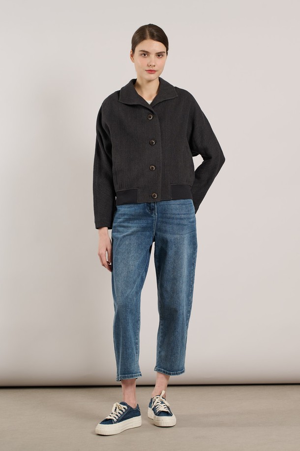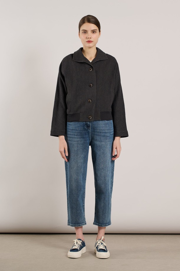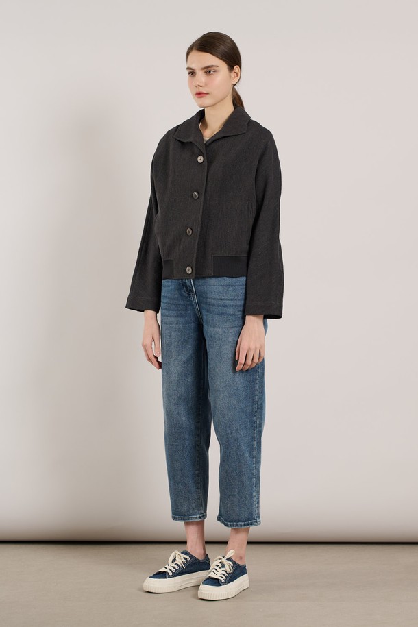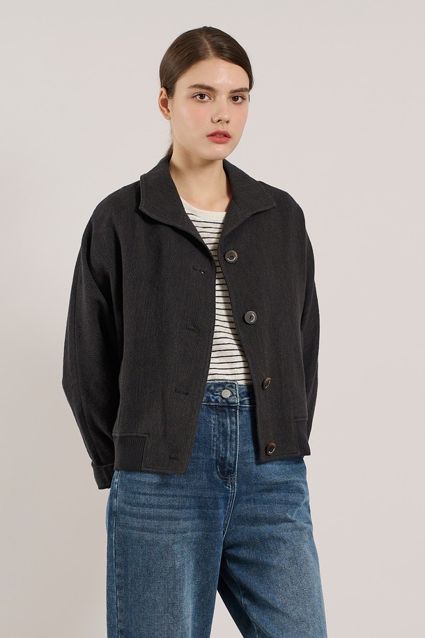 [25SU] 린넨 밑단 니트패치 자켓 - CHARCOAL GRAY A5M3J10798