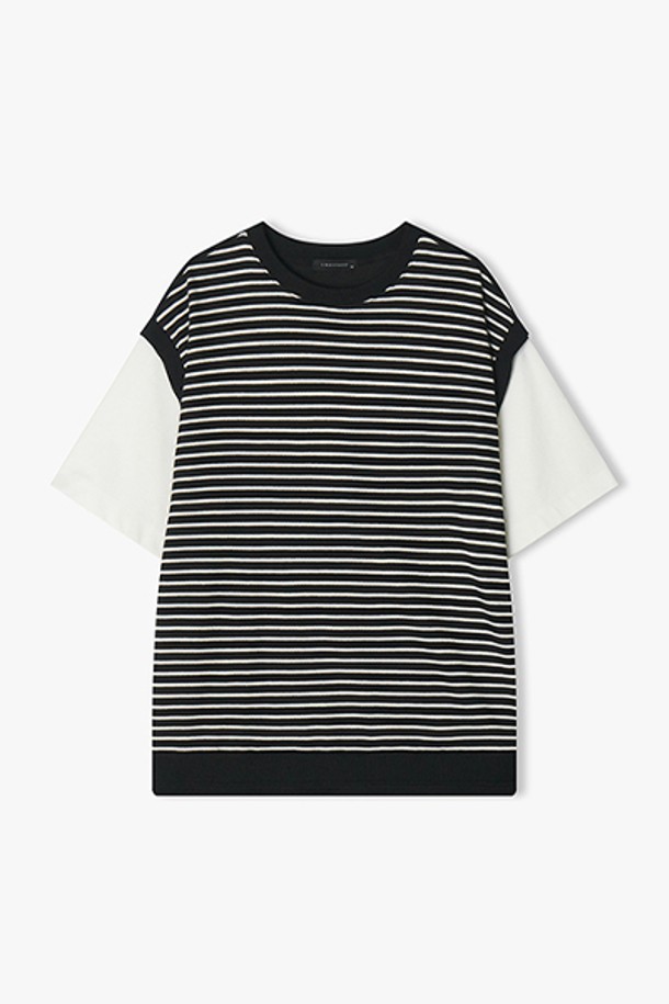 [25SS] LLM41514 블랙 스트라이프 믹스 베스트 하프 티셔츠