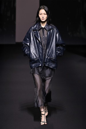 FUNNEL NECK VEGAN LEATHER JACKET MIDNIGHT NAVY