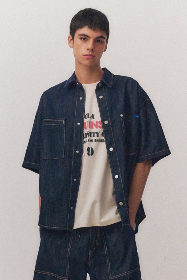 남녀공용 쿨프래쉬 투포켓 반팔 데님 셔츠[DK-INDIGO](UB6SS86_07)