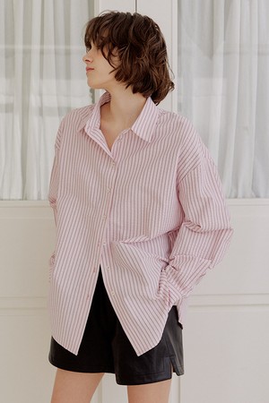 [6차 리오더] 시어서커 오버핏 스트라이프 셔츠 [핑크]