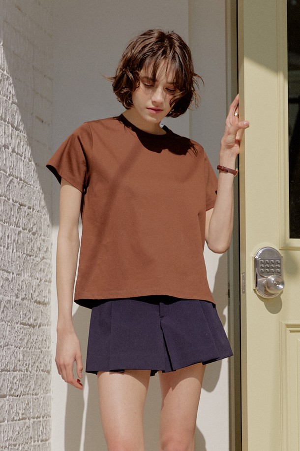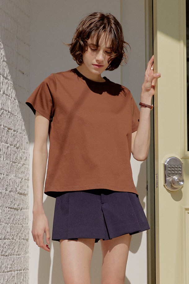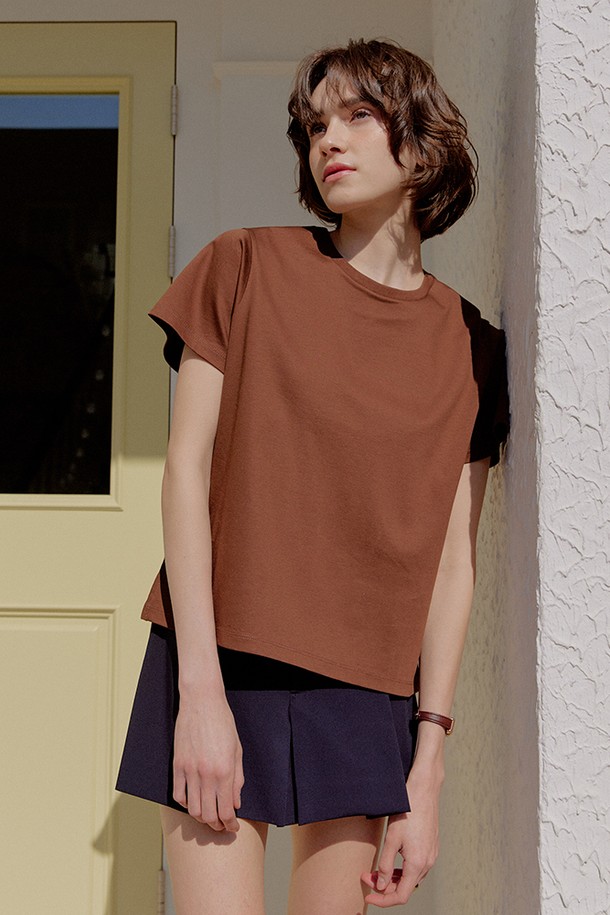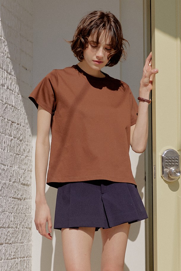 60수 기자 코튼 하프 티셔츠 [브라운]