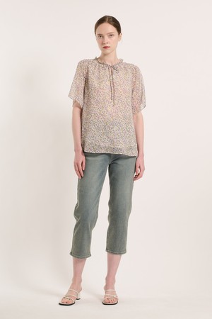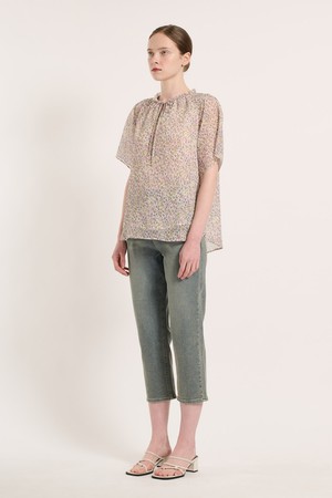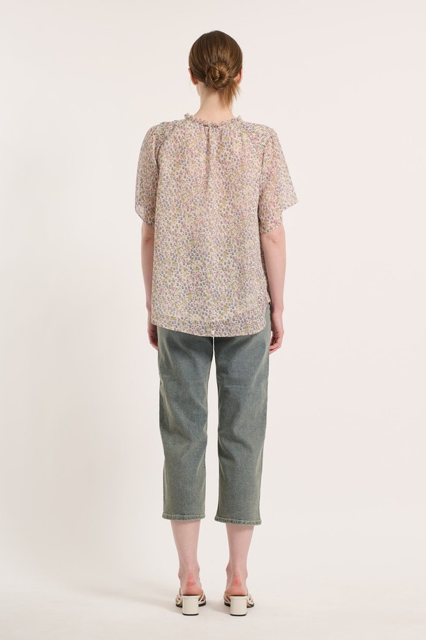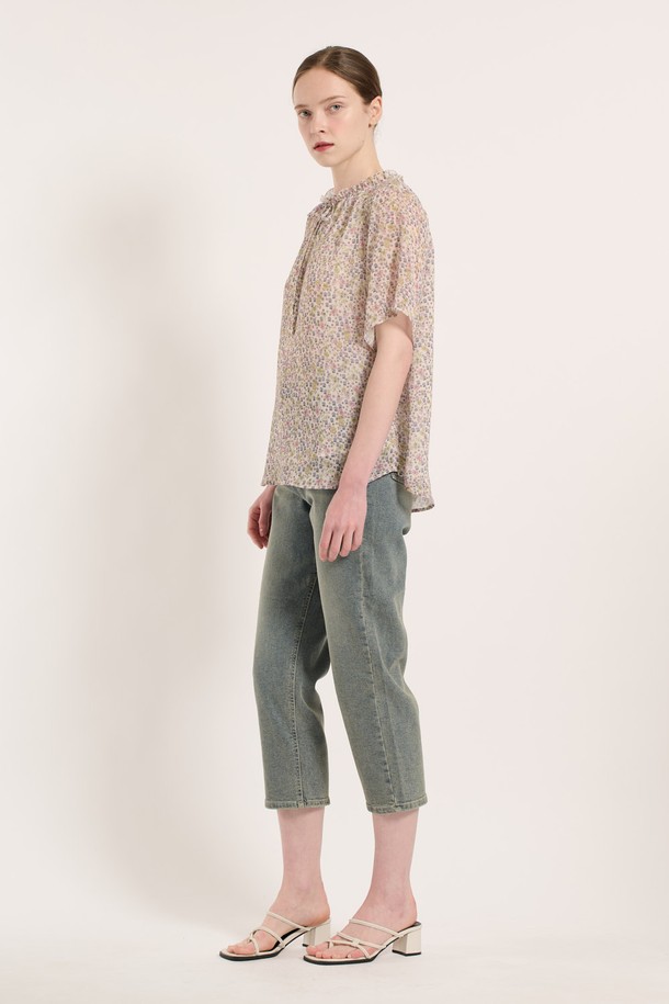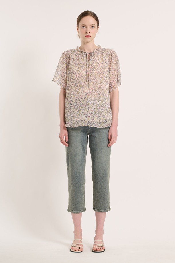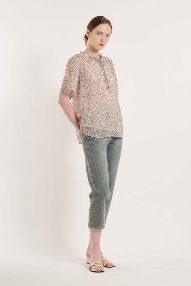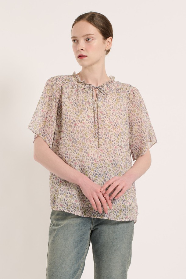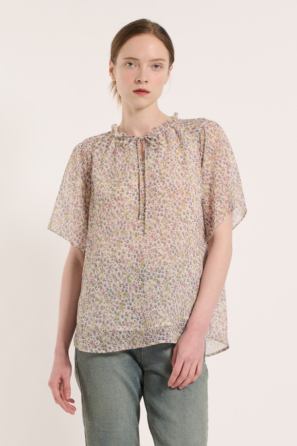 [25SU] 플로럴 셔링 블라우스 - IVORY B5M5B49313
