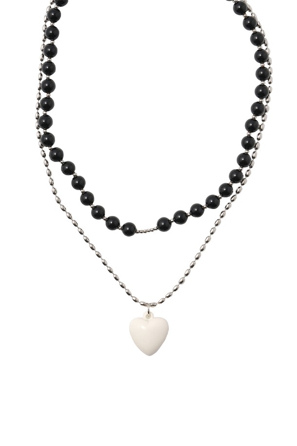 Color Jamstone and Heart Layered Necklace[set]-Black & White