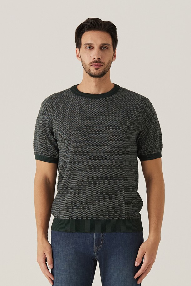 변형 투톤조직 라운드 니트 D/카키 (AM0FTSR20327)