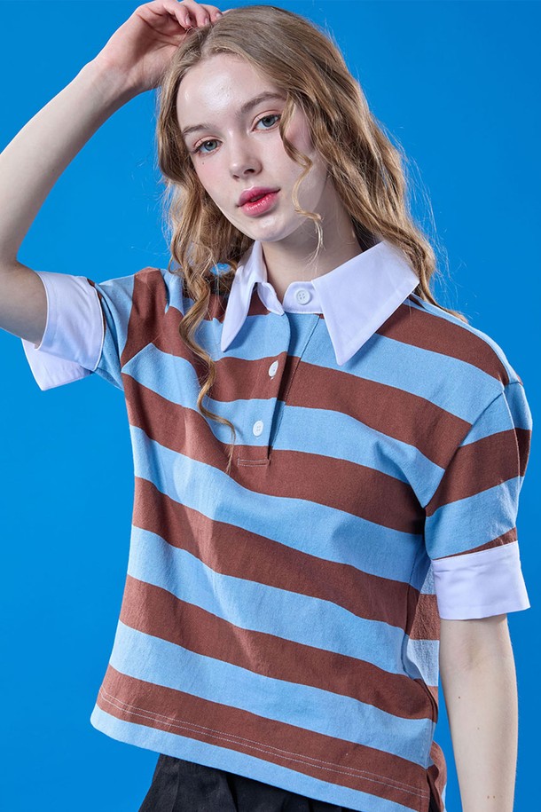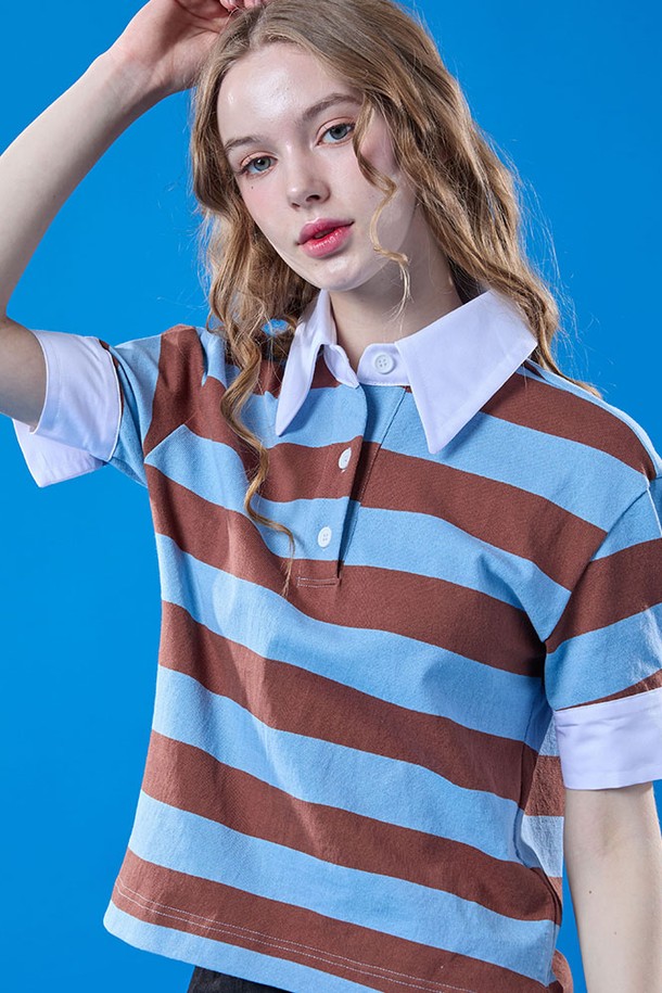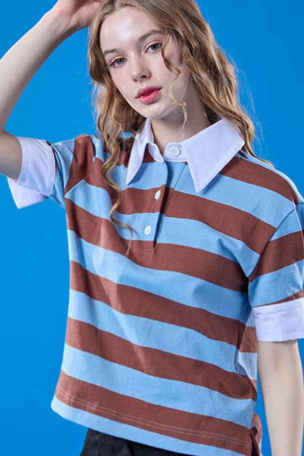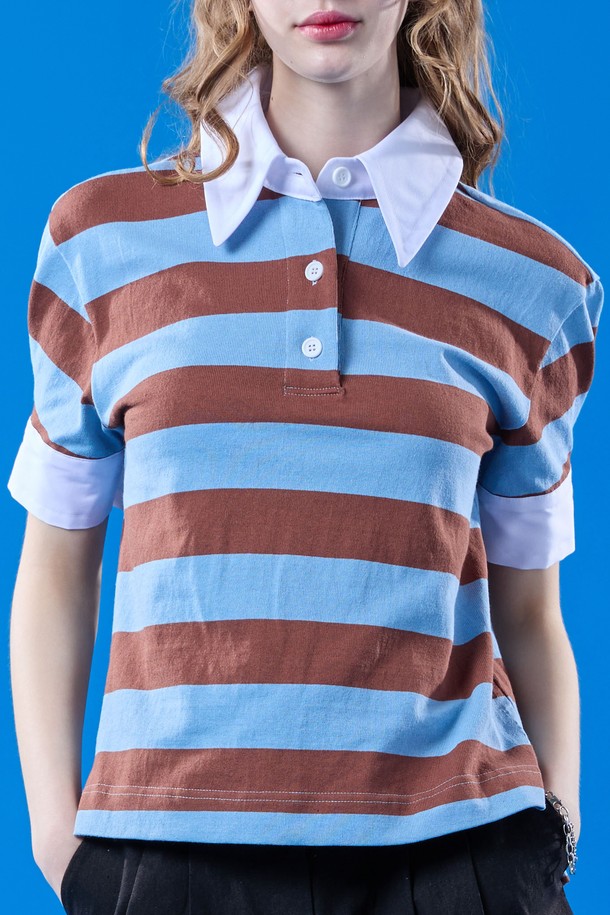퍼프 멜빈 빈티지 스트라이프 카라 반팔티 [SKY_BLUE]