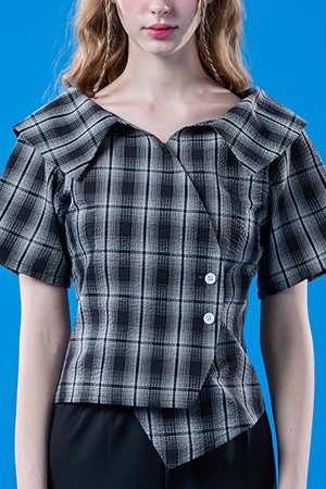 여름 휴양지 랩 오프숄더 체크 쿨링 슬림 반팔셔츠 [BLACK]