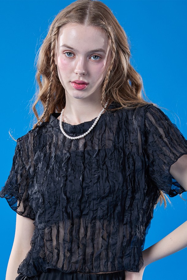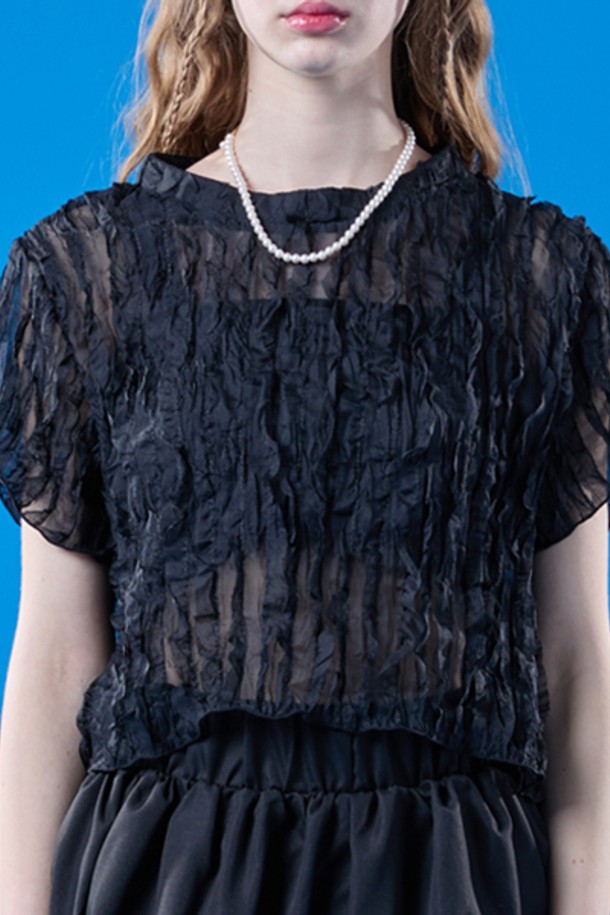 시스루 자외선 차단 프릴 마몽 반팔티 [BLACK]
