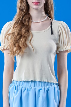 퍼프 프릴 라운드 이너 반팔티 [버터옐로우]