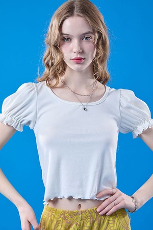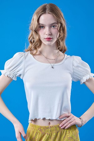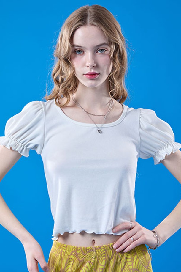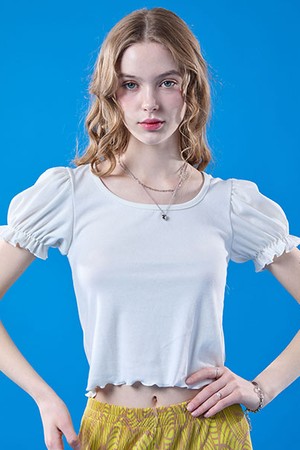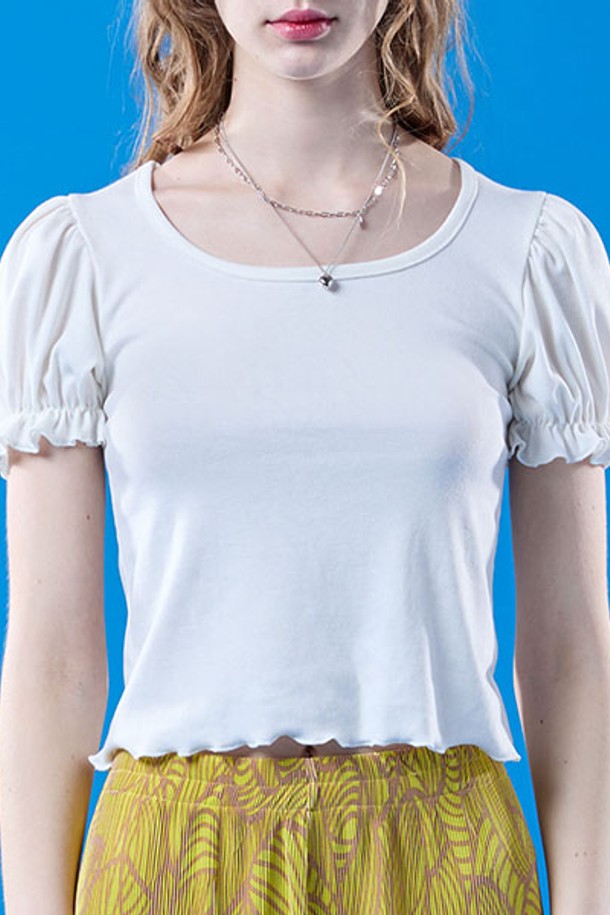 퍼프 프릴 라운드 이너 반팔티 [화이트]