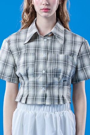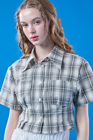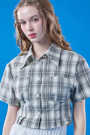 여름 휴양지 체크 쿨링 슬림 크롭 반팔셔츠 [IVORY]
