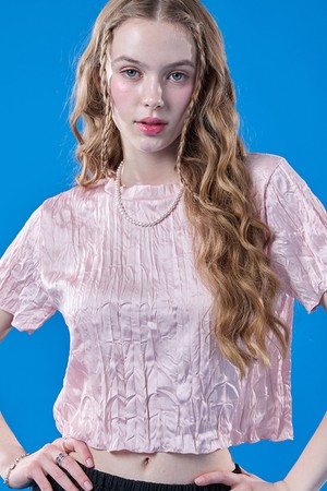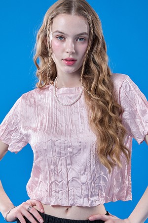 쉬폰 쿨링 마몽 크롭 무지 반팔티 [PINK]