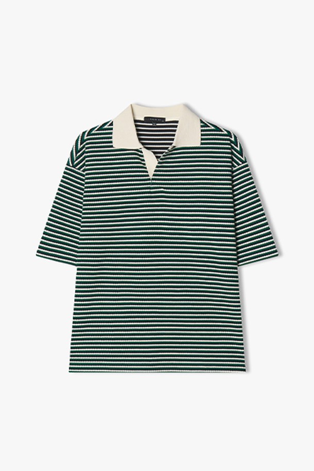 [25SS] LLM41525 그린 트위드 자카드 오픈칼라 하프 티셔츠
