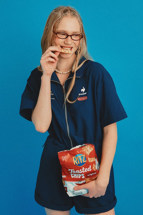 르꼬끄X그로서리스터프 여성 시어서커 점프슈트 - 네이비(QQ222LPT45)