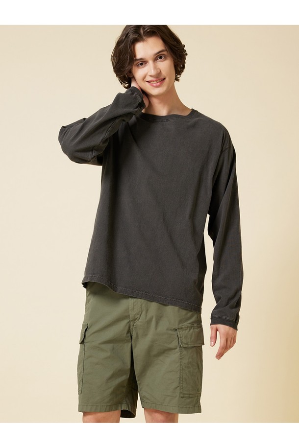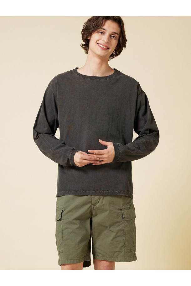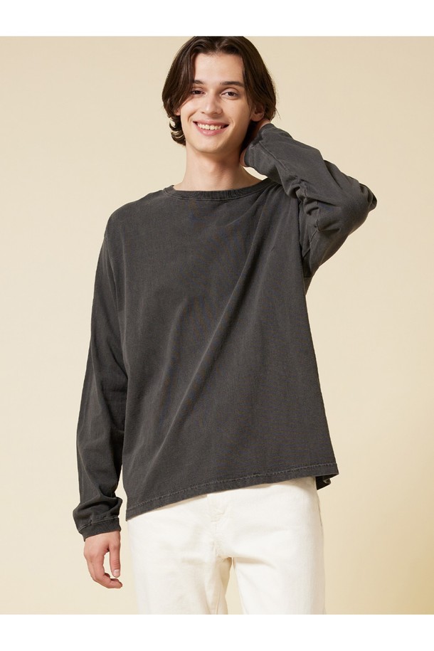 피그먼트 다잉 긴팔 티셔츠 - 블랙