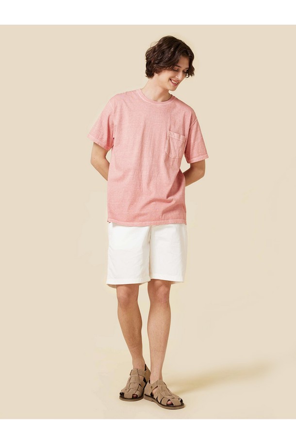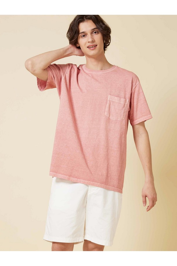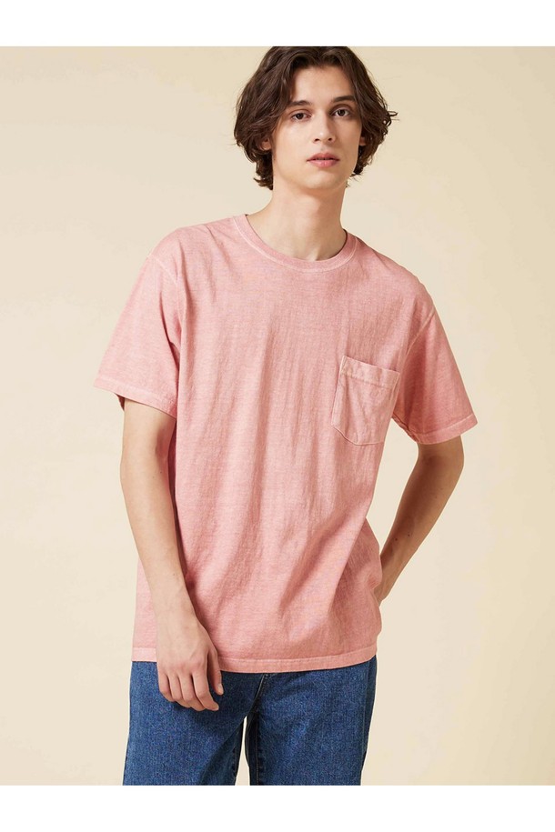 피그먼트 다잉 포켓 반팔 티셔츠 - 코랄