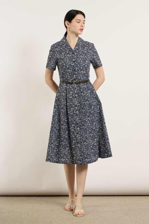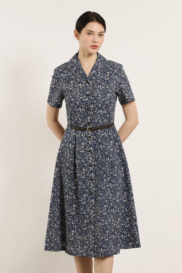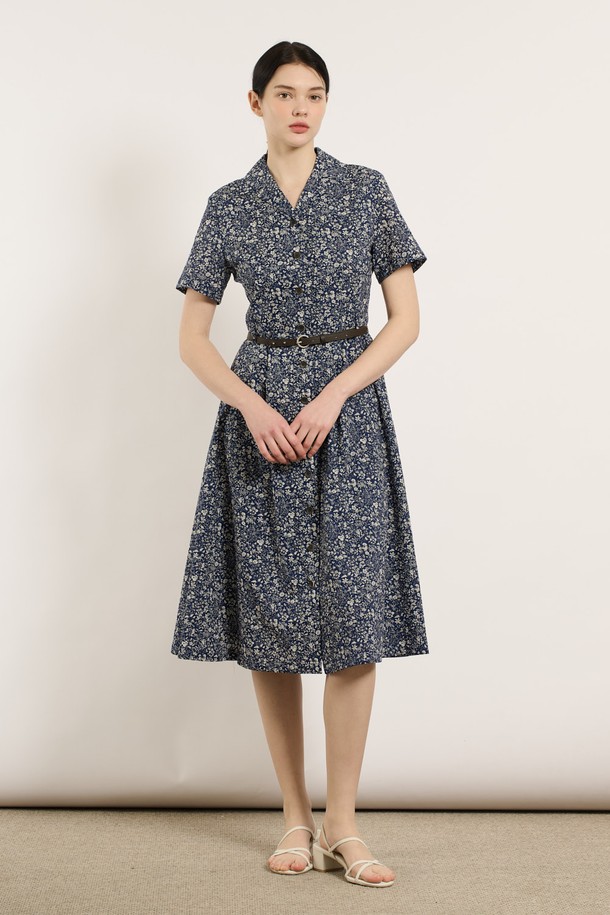 [25SU] 로열 프린팅 더블 카라 원피스 - NAVY B5M3O60755