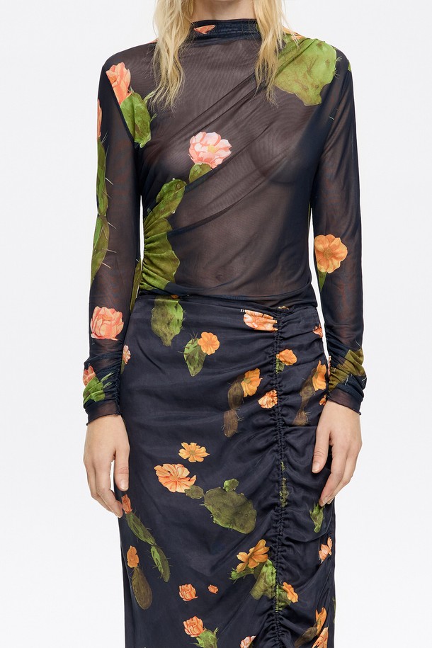 [25SS] 빔바이롤라 선인장 튤레 러치드 티셔츠 B255AWT047BKB