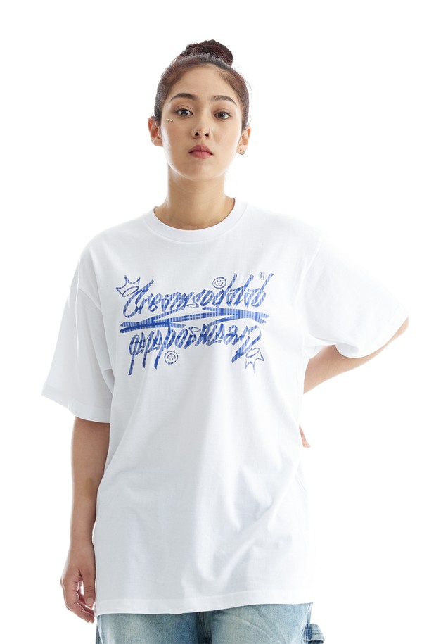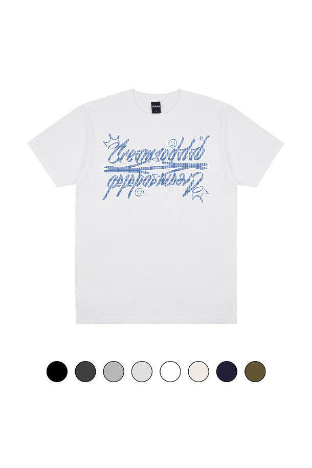 씨알에스디엘 타탄 체크 로고 반팔 티셔츠