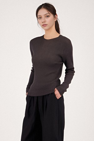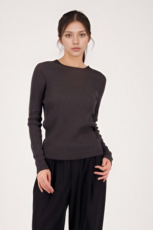 [25SS] Long Sleeve Ribbed Linen Knit _Charcoal
