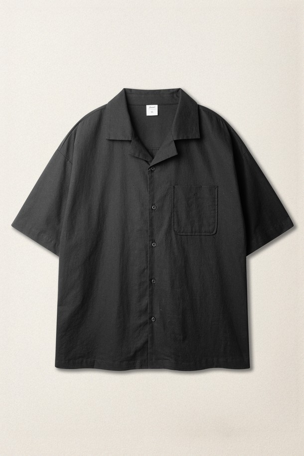 오픈 카라 린넨 라이크 반팔셔츠 블랙 KJSS2622