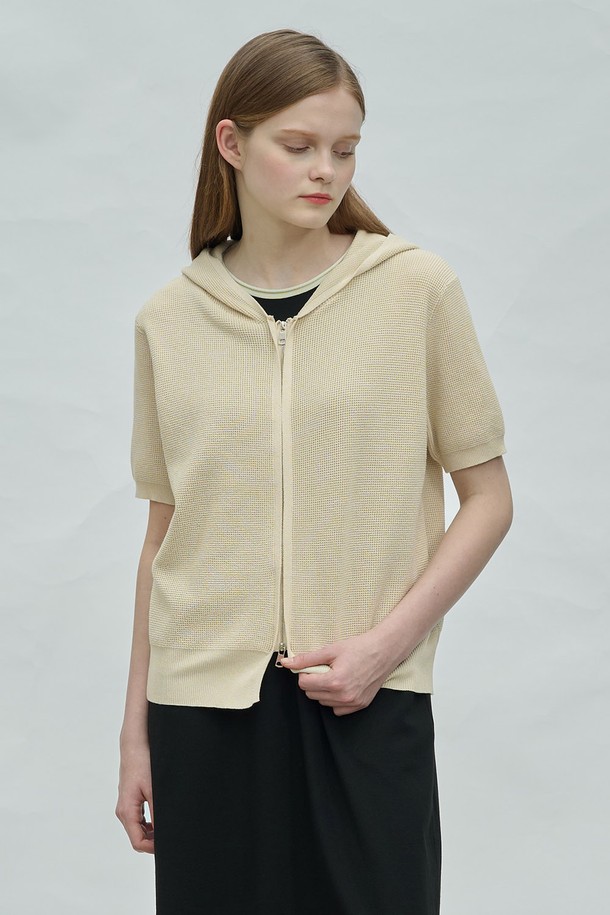 [25SU] 후드 집업 니트 가디건 - LIGHT BEIGE A5M4I29771