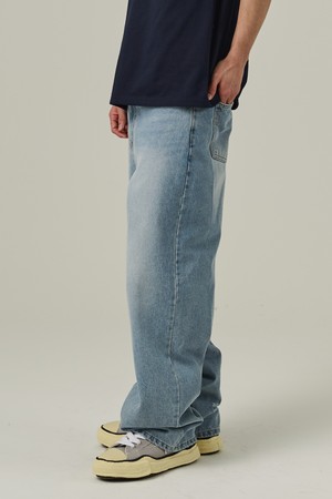 베이직 워싱 세미 와이드 데님팬츠 (연청)