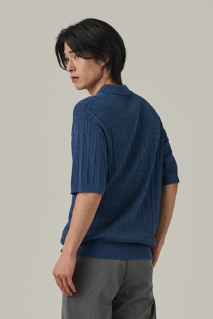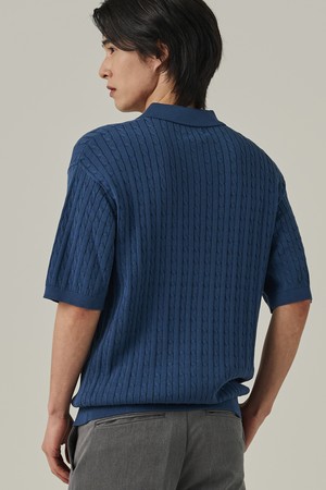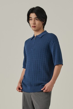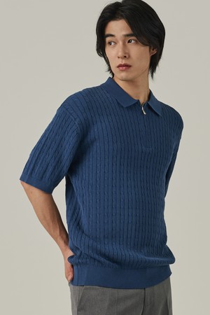 케이블 하프 집업 카라 반팔니트 (딥블루)