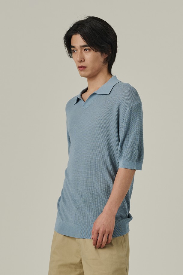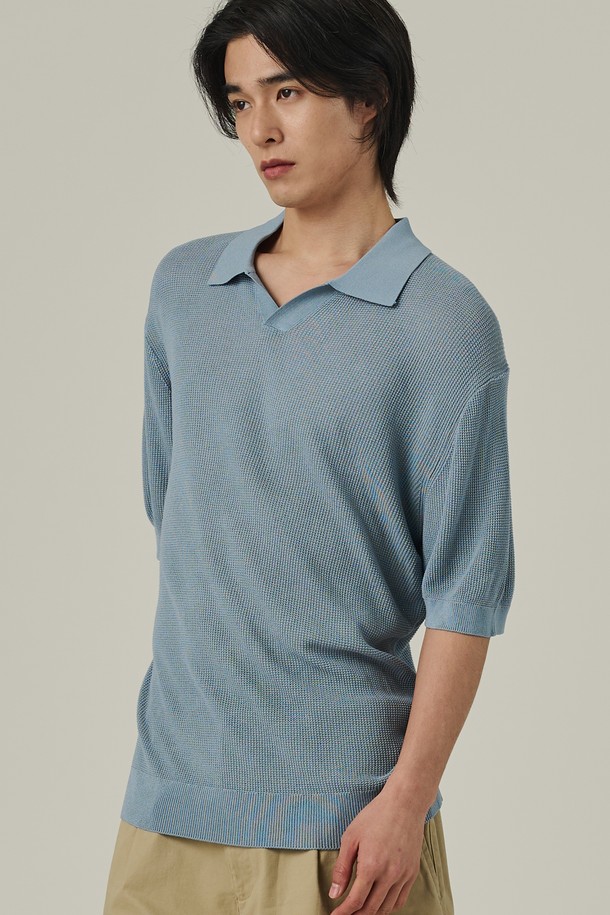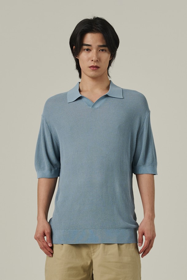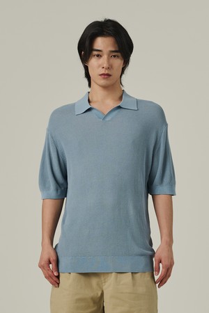 네프 오픈 카라 반팔니트 (소라)