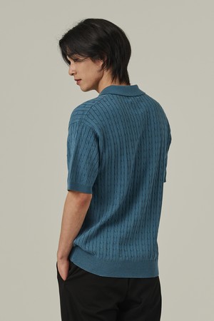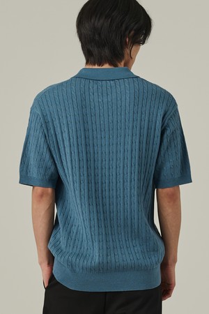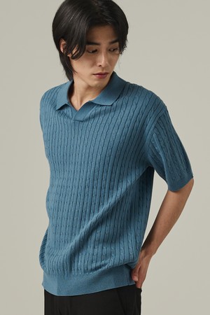 케이블 오픈카라 반팔니트 (블루)
