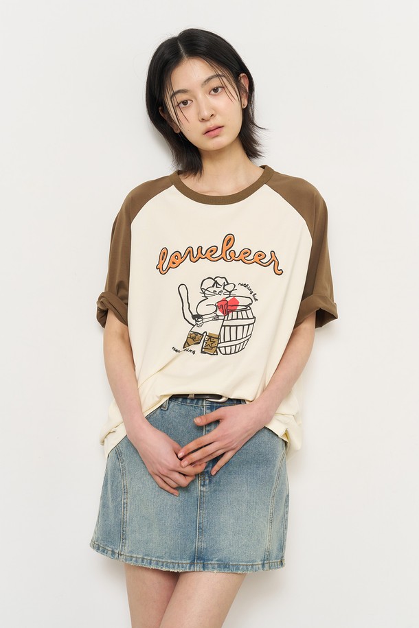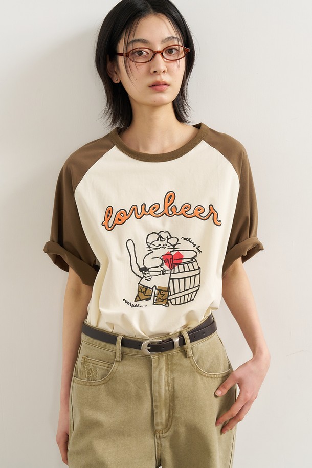 [25SS] UNISEX 래글런 웨스턴 캣 그래픽 반팔티 [CREAM] / SBE2U01008