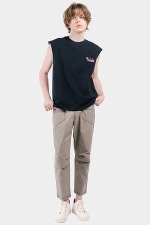 무릎 터크 슬림핏 워싱 남자 9부 밴딩 팬츠 CXS25MWPT406 BEI