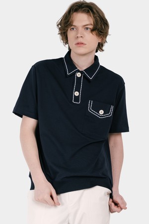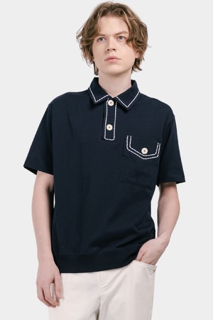 프레피 호시디테일 남자 반팔 카라 티셔츠 CXS25MKKT415 NAV