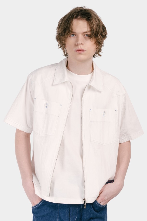 엣지요크 투웨이 세미오버핏 집업 남자 아우터 반팔셔츠 CXS25MWSH417 WHI