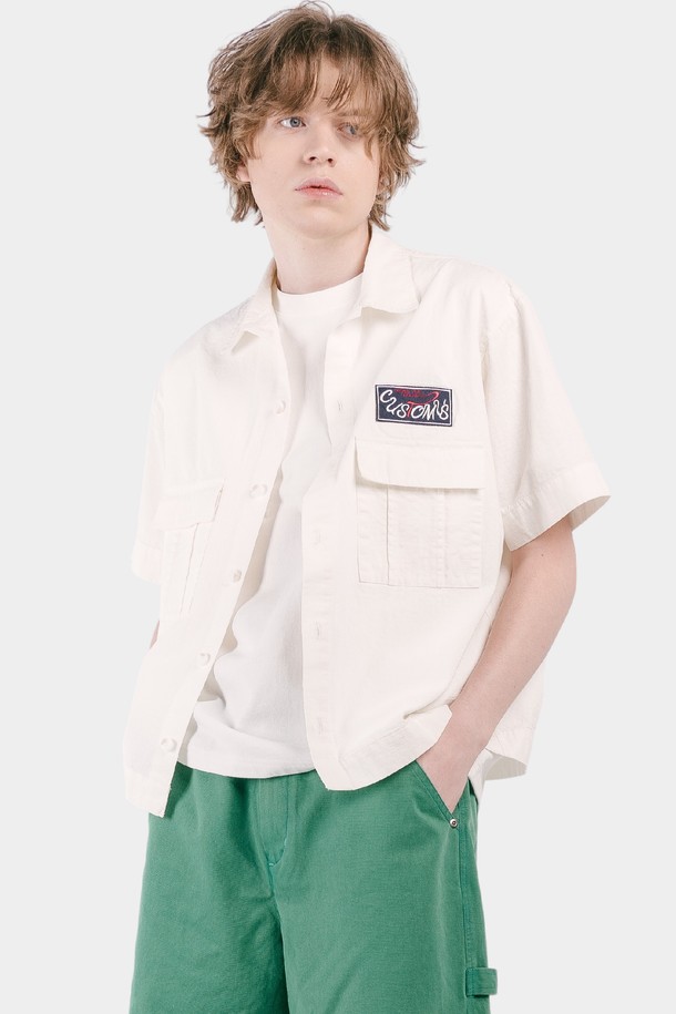 빅 포켓 세미 오버핏 립스타 워싱 남자 아우터 반팔셔츠 CXS25MWSH403 WHI