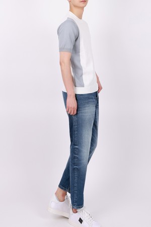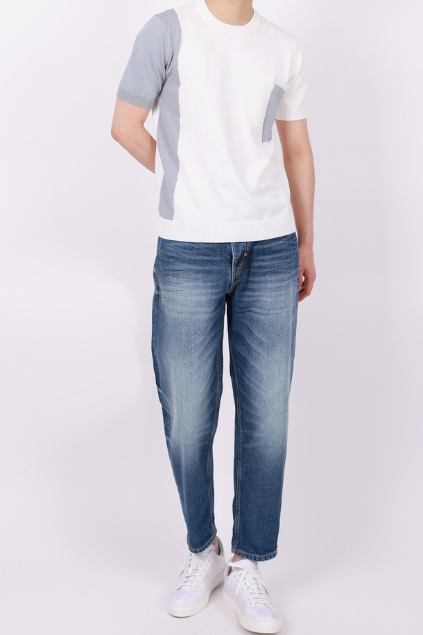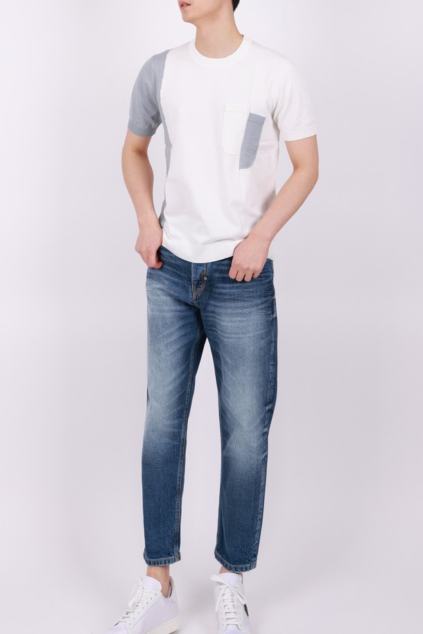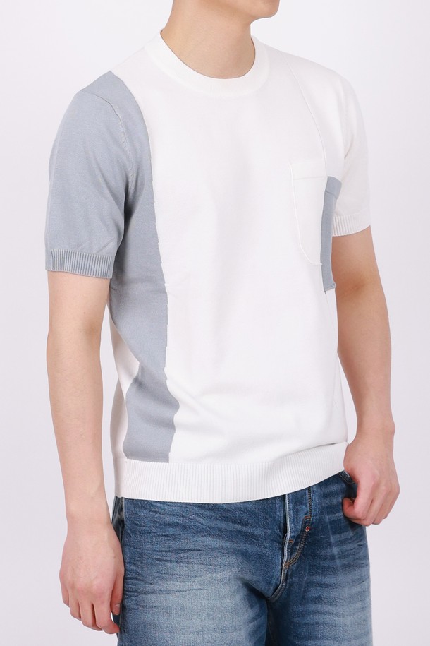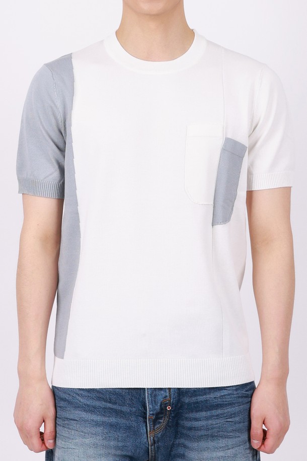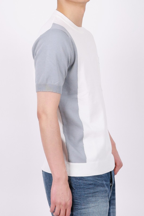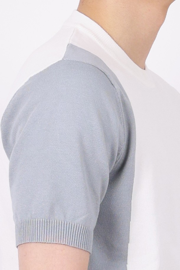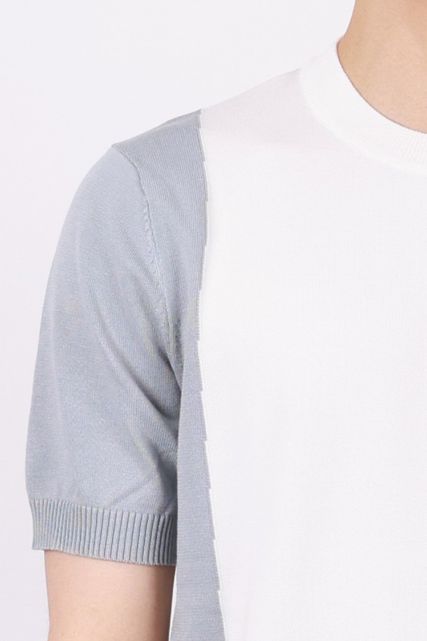 멀티컬러 라운드넥 니트 반팔 티셔츠 STEE105A
