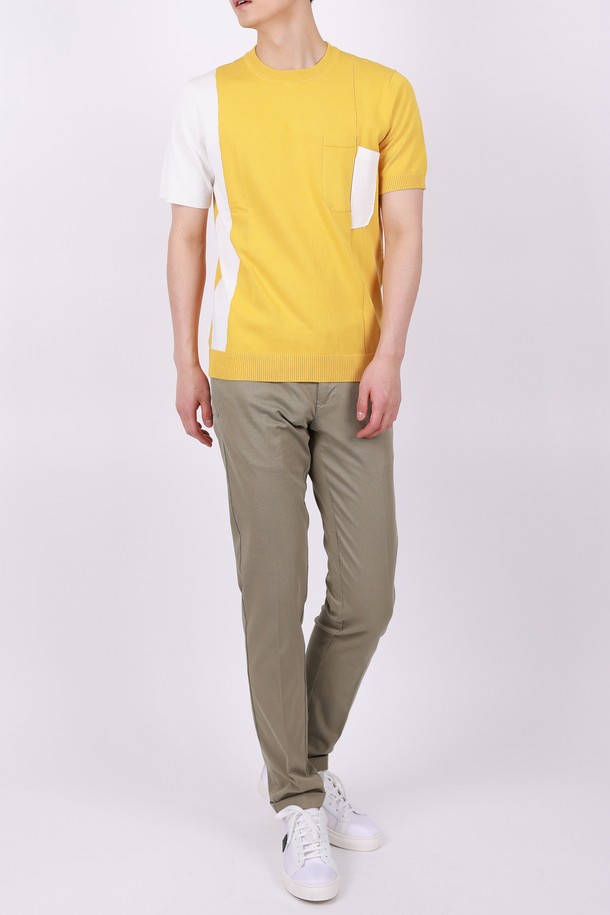 멀티컬러 라운드넥 니트 반팔 티셔츠 STEE105A