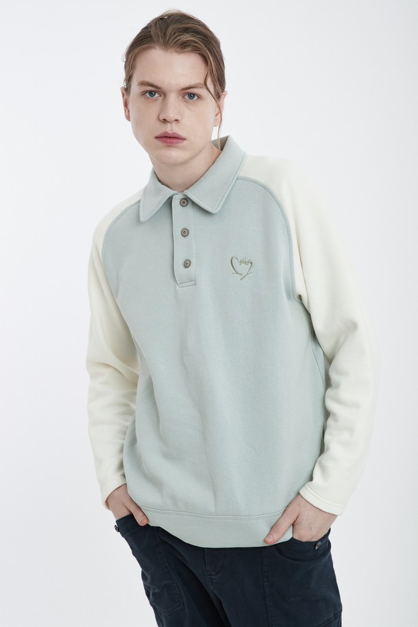 라그랑소매배색 기모 카라 티셔츠 CXS24WKKTA07 GRN