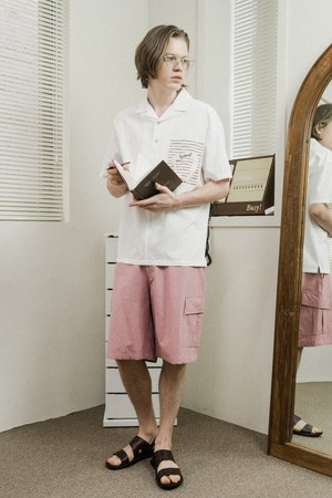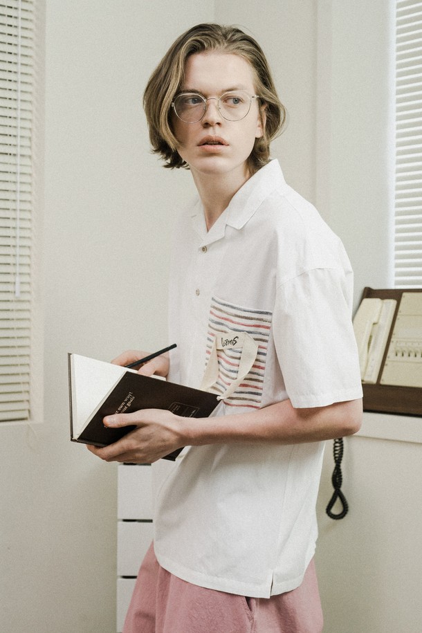 [커스텀어스] 선염포켓 로코테이프 반팔 우븐셔츠 CXS24MWSH507 WHI