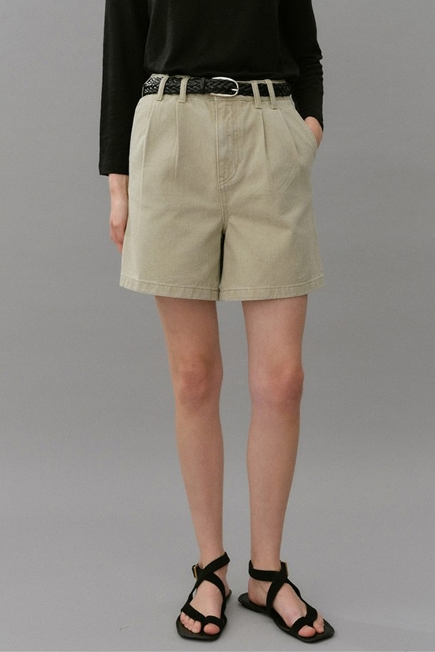 denim tuck shorts (beige)