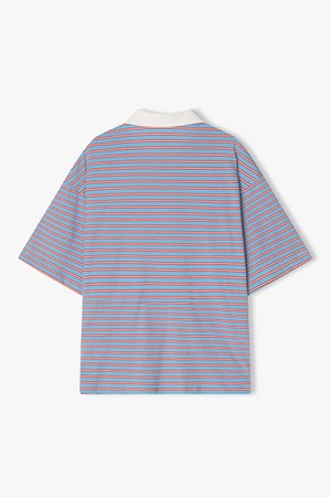 [25SS] LLB41502 블루 멀티 스트라이프 칼라 하프 티셔츠