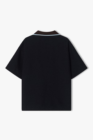 [25SS] LLM41541 다크네이비 트위드 컬러리브 칼라 하프 티셔츠