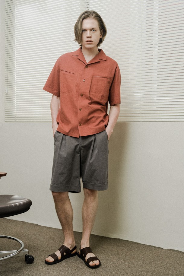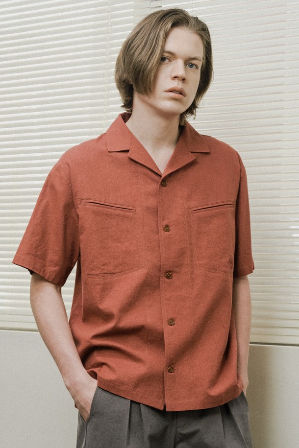 [커스텀어스] 사선입술포켓 린넨 반팔셔츠 CXS24MWSH501 BRI